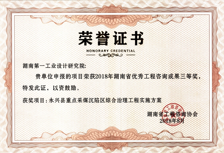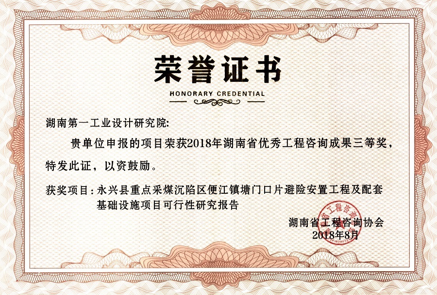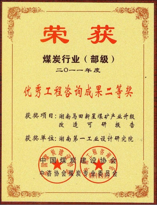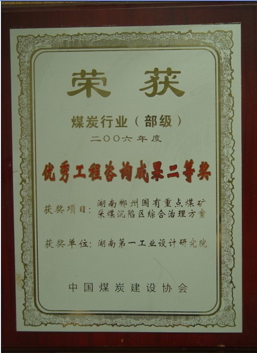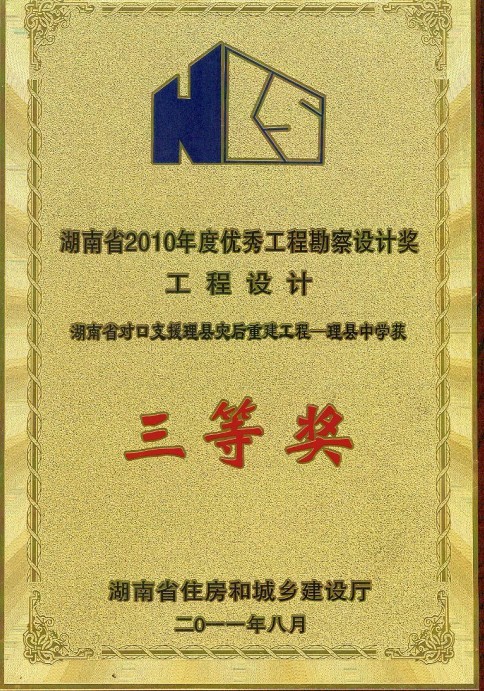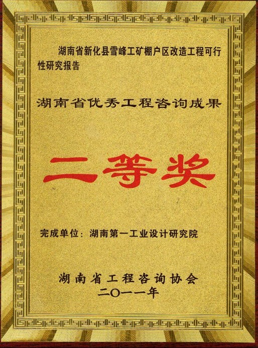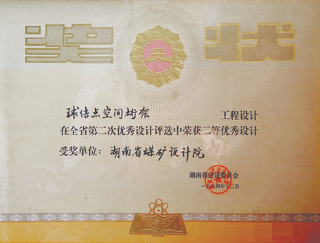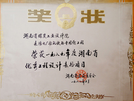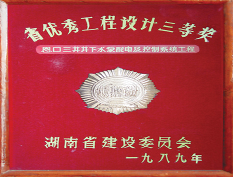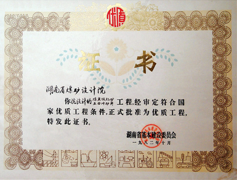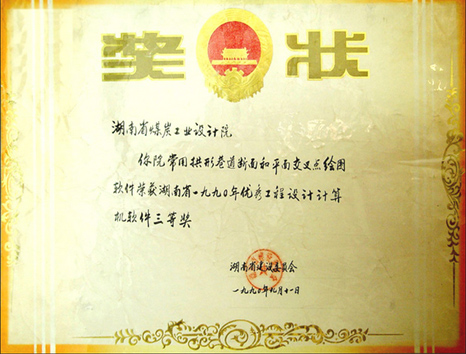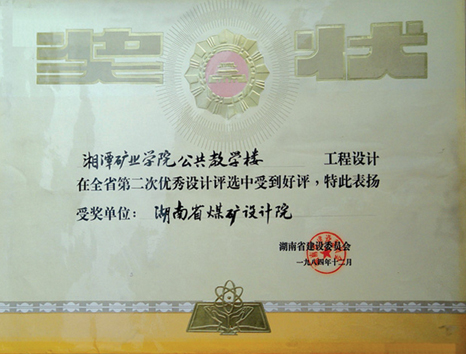 湖南省優(yōu)秀設(shè)計(jì)表揚(yáng)金獎(1984)