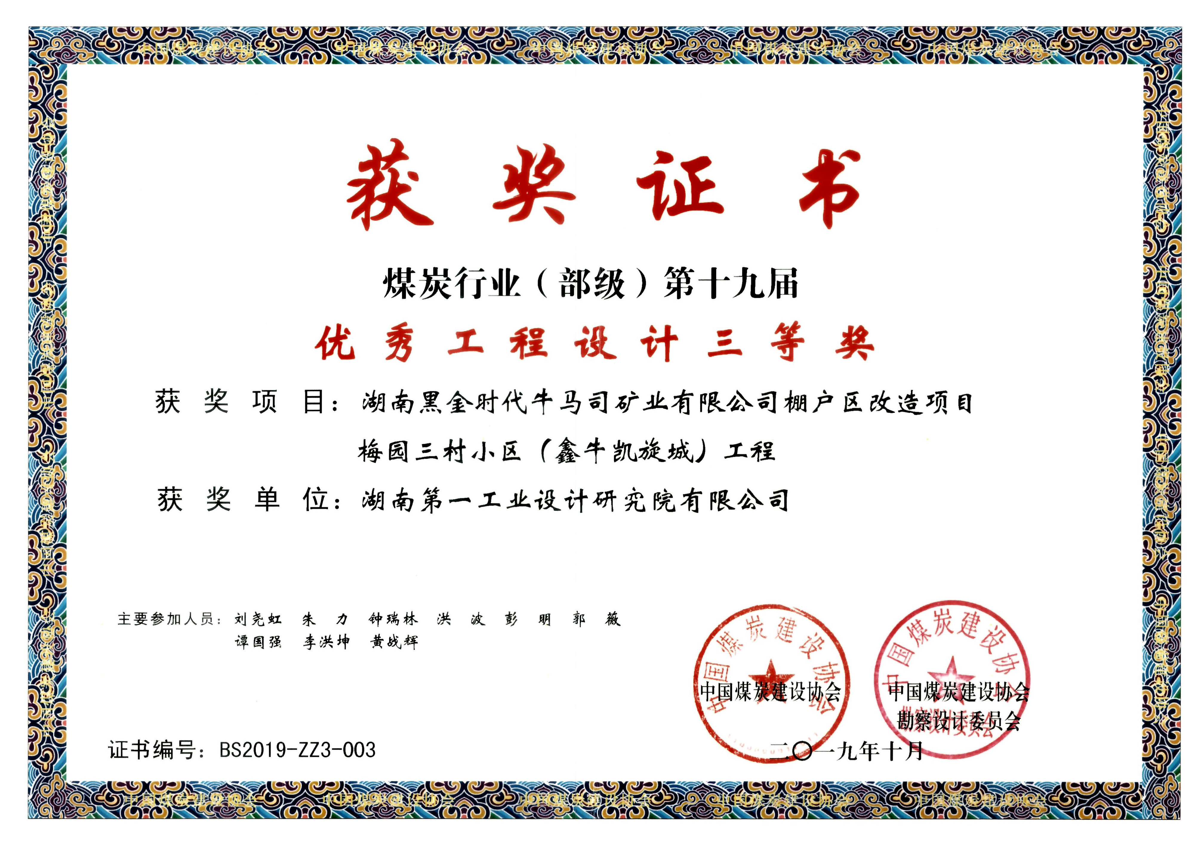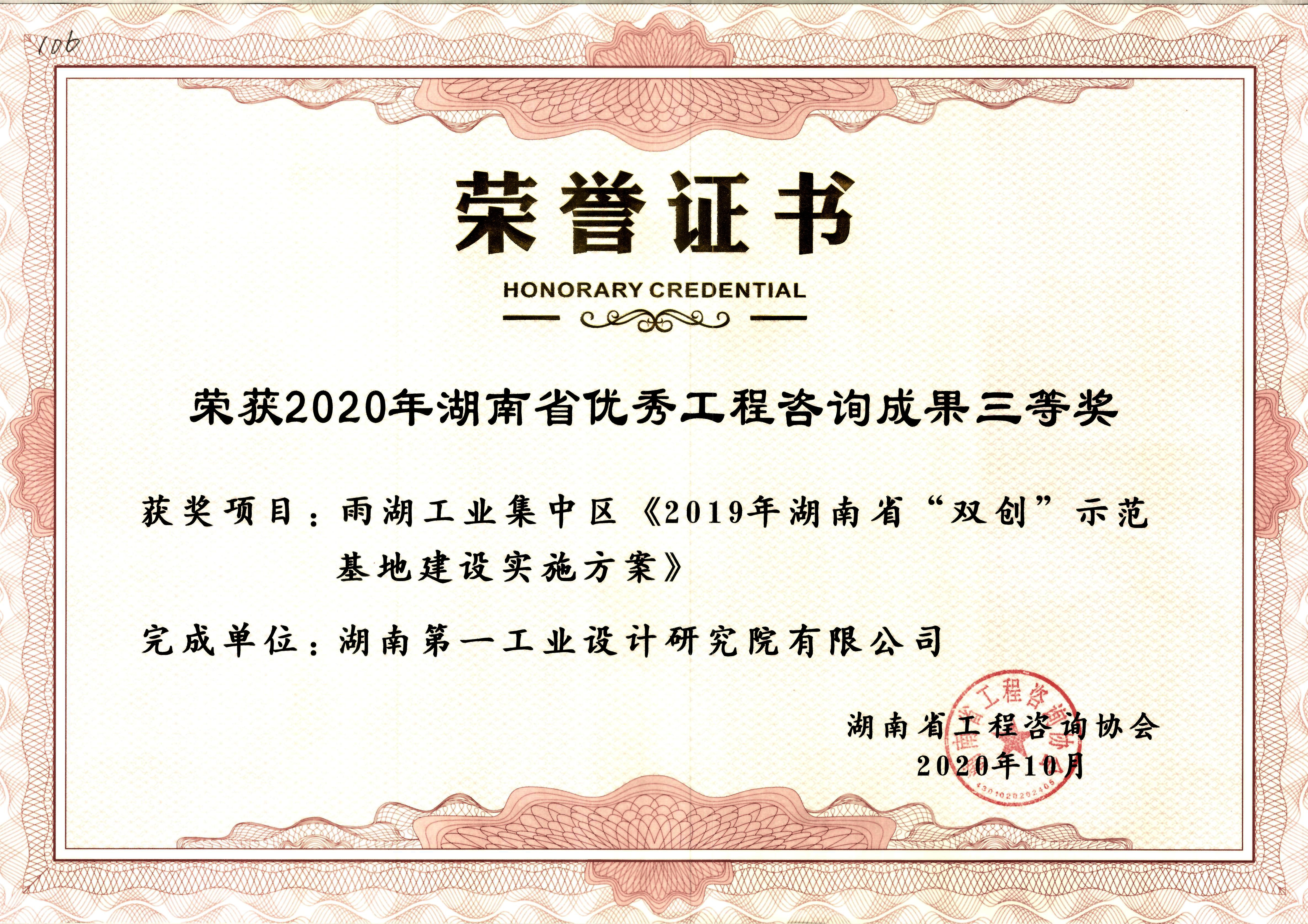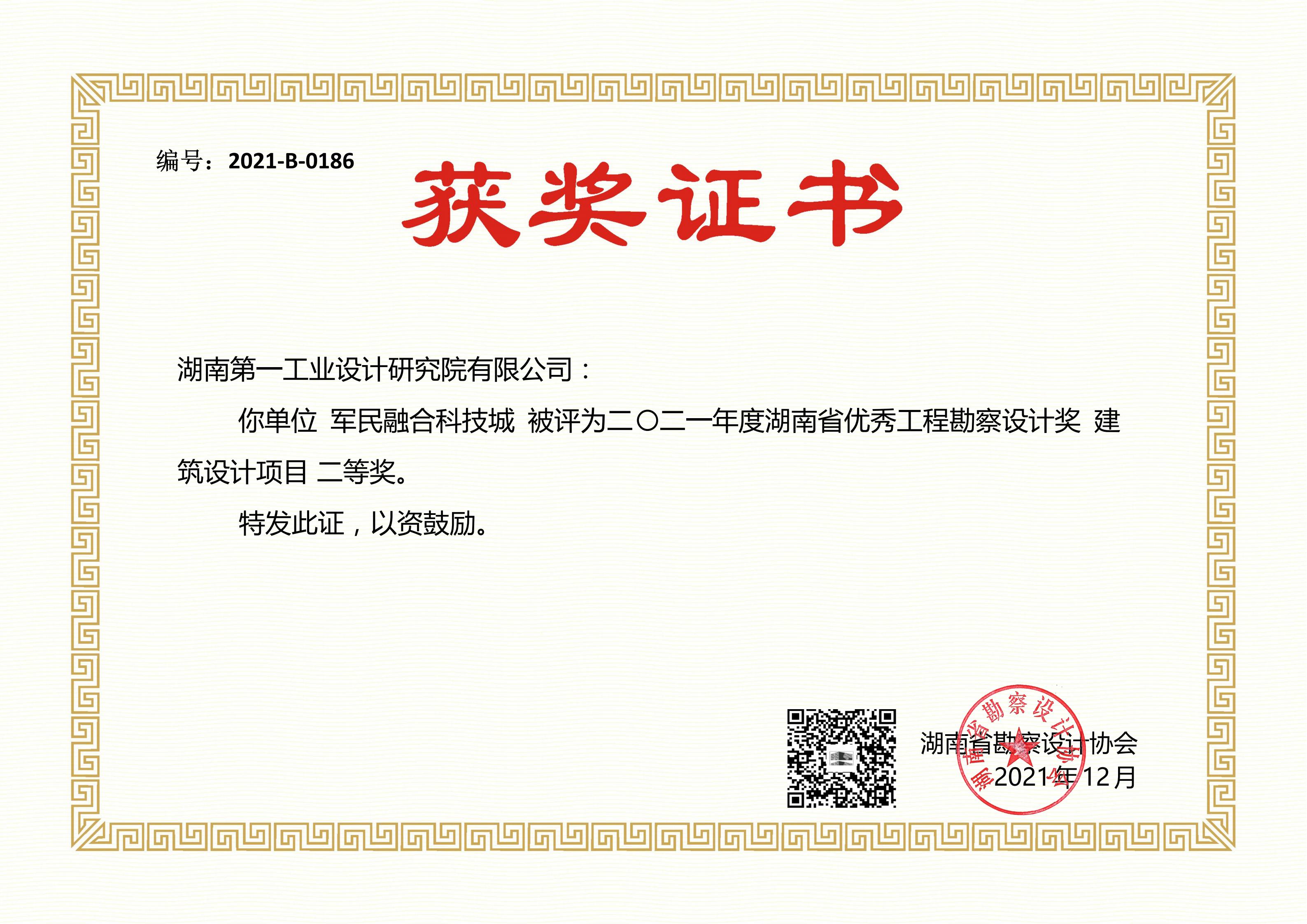 湖南省優(yōu)秀設(shè)計(jì)表揚(yáng)金獎(1984)